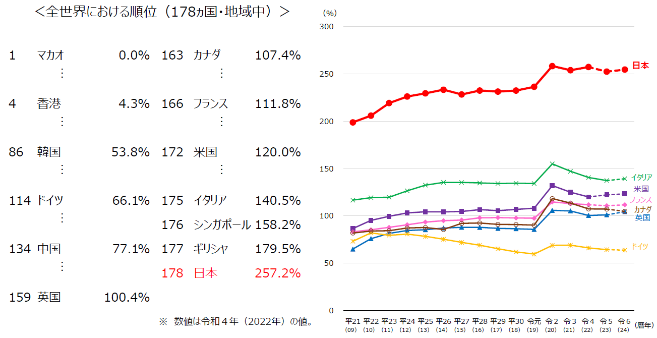 他の主要国と比べても日本だけがぶっちぎりの借金の多さだよ