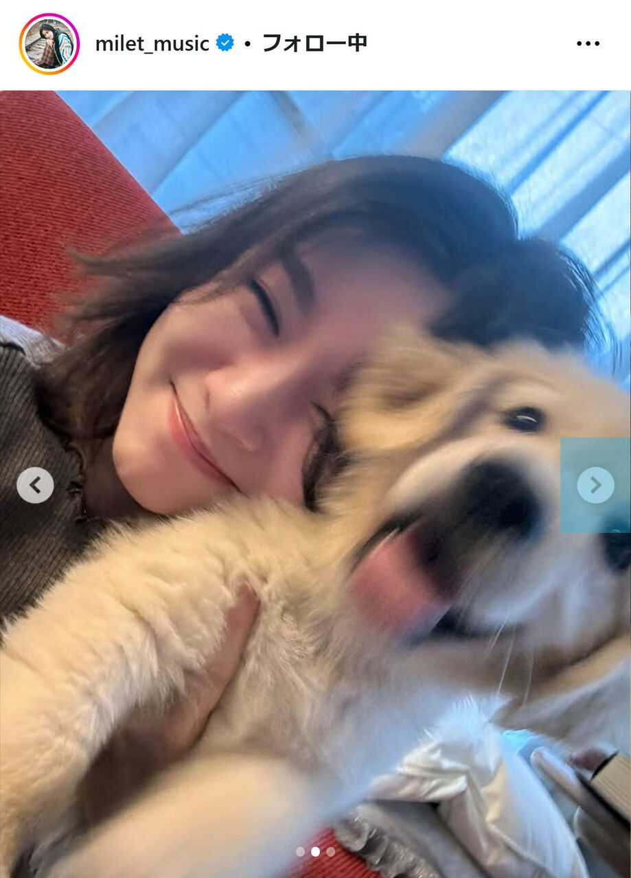 活動休止中のシンガー・ソングライターのmiletが30日、インスタグラムを更新。愛犬を紹介した。