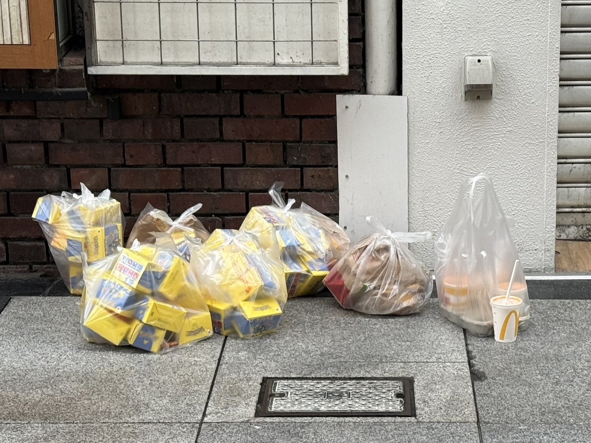 マックの前を通ったら自転車カゴに山盛り突っ込んで駐輪してた