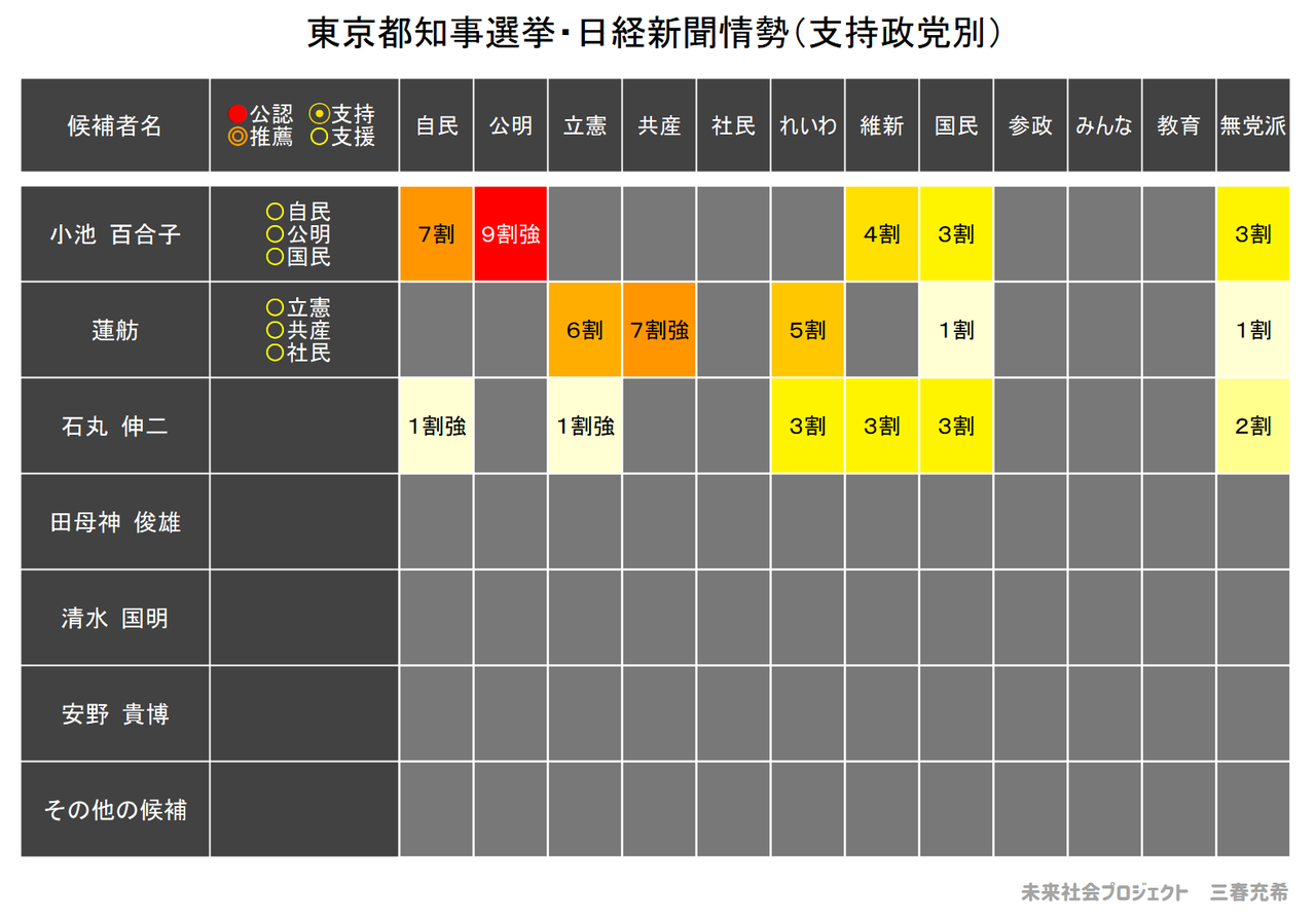永田町関係者は「石丸氏はネットの人気に加え、都知事選の街頭演説を週末には1日10カ所以上行い、猛烈に浸透している。ボランティアも5000人以上集まったという。蓮舫氏は知名度はあるが、1日数カ所の街頭演説にとどまっている。立憲民主党や共産党の全力支援を受ける蓮舫氏に対し、政党色を無くした石丸氏に無党派層が関心を持っているのではないか」と語っている。