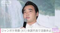 | ジャンポケ斉藤慎二(41)活動休止 体調不良続く 所属事務所が発表 …お笑いトリオ「ジャングルポケット」の斉藤慎二さんが活動休止することを所属する吉本興業が発表しました。 吉本興業は20日に公式サイトを更新し、「弊社… (出典:テレビ朝日系(ANN)) |