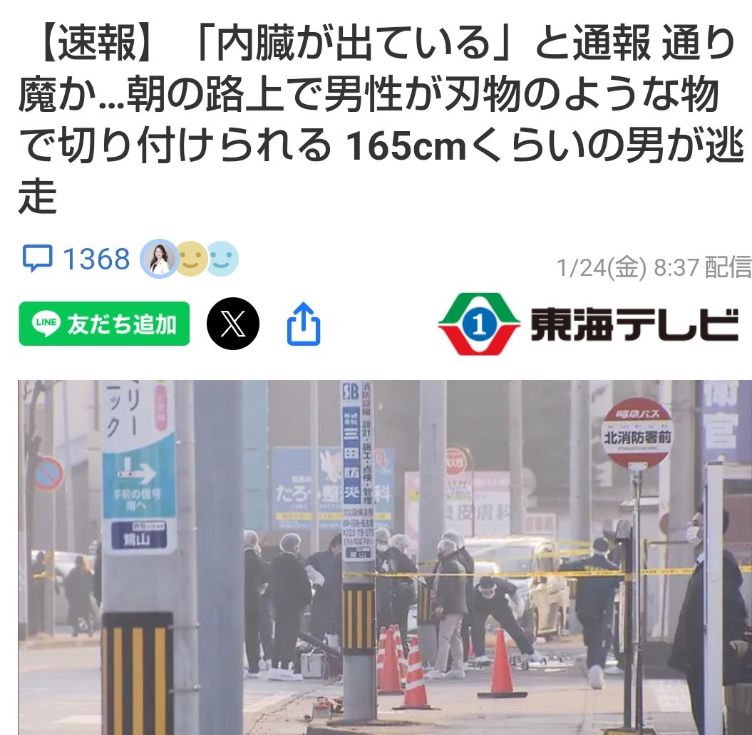 長野の通り魔犯が逃げて岐阜でも犯行重ねてる