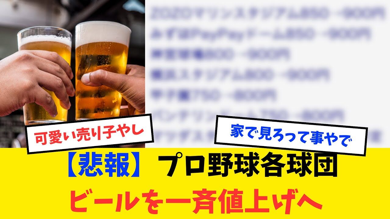 | プロ野球「観戦ビール」一斉値上げ…ZOZOマリンもPayPayドームも神宮も横浜も「900円」だってよ! - アサ芸プラス プロ野球「観戦ビール」一斉値上げ…ZOZOマリンもPayPayドームも神宮も横浜も「900円」だってよ! アサ芸プラス (出典:アサ芸プラス) |