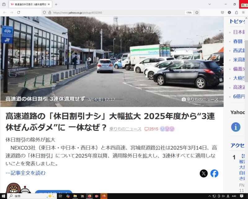 西日本)と本四高速、宮城県道路公社は2025年3月14日、高速道路の「休日割引」について2025年度以降、適用除外日を拡大し、3連休すべてに適用しないことを発表しました。